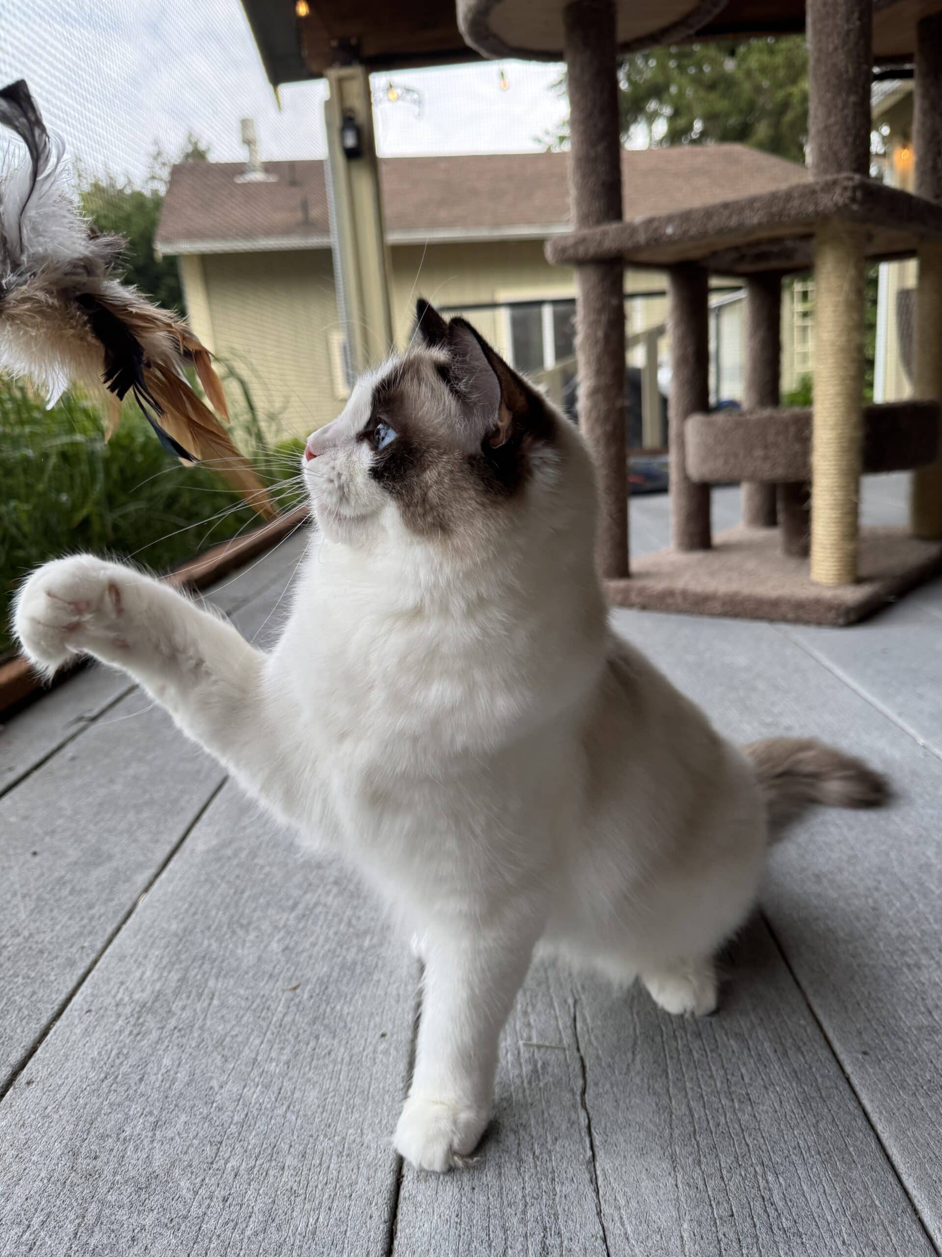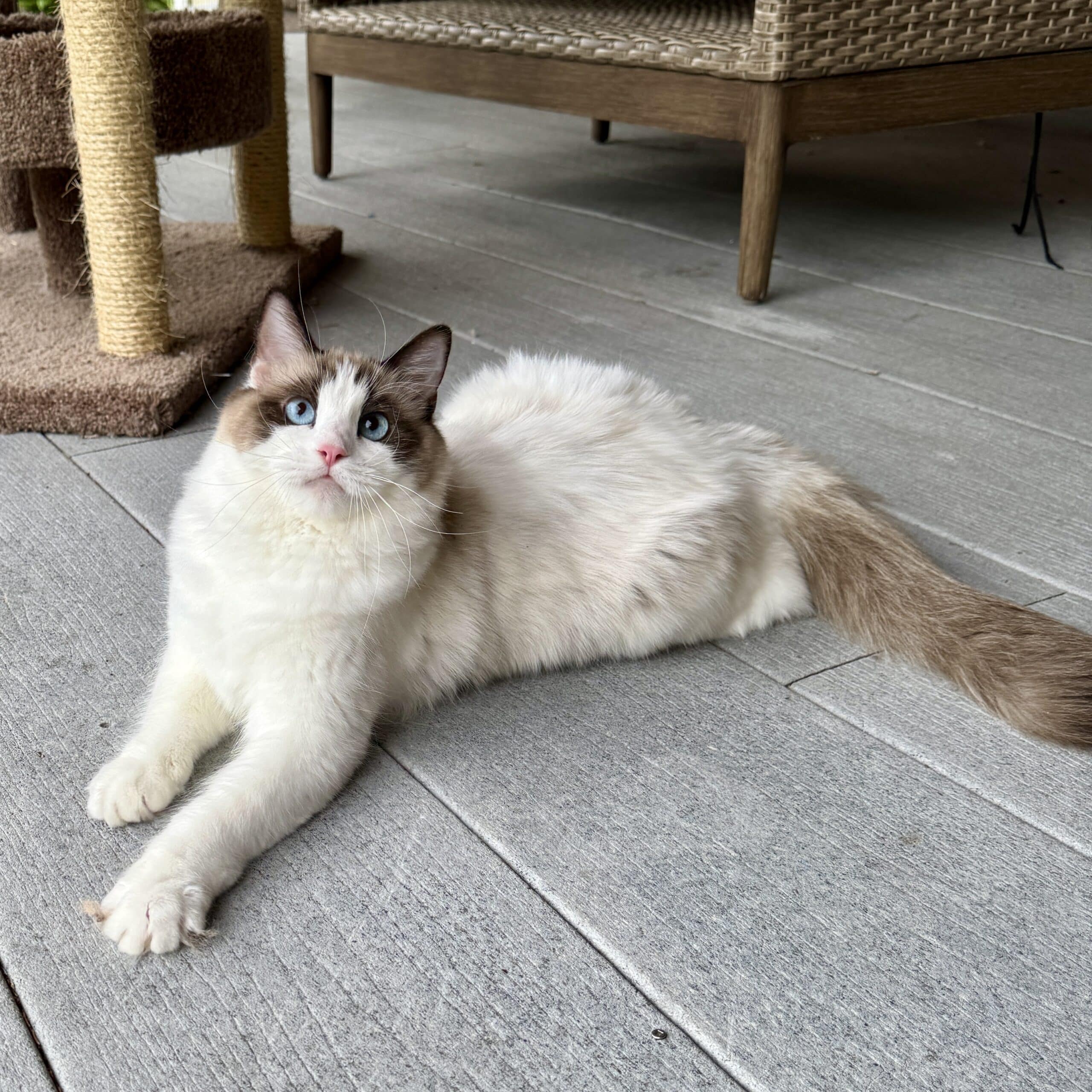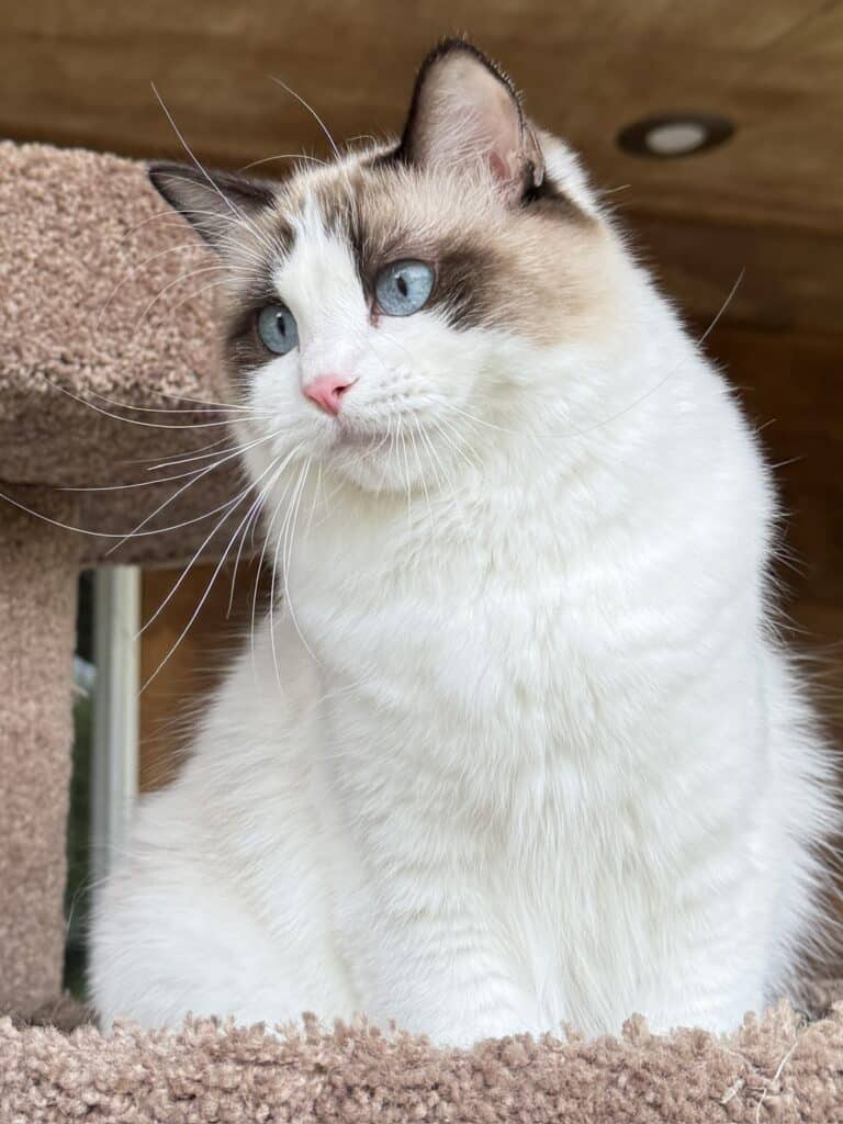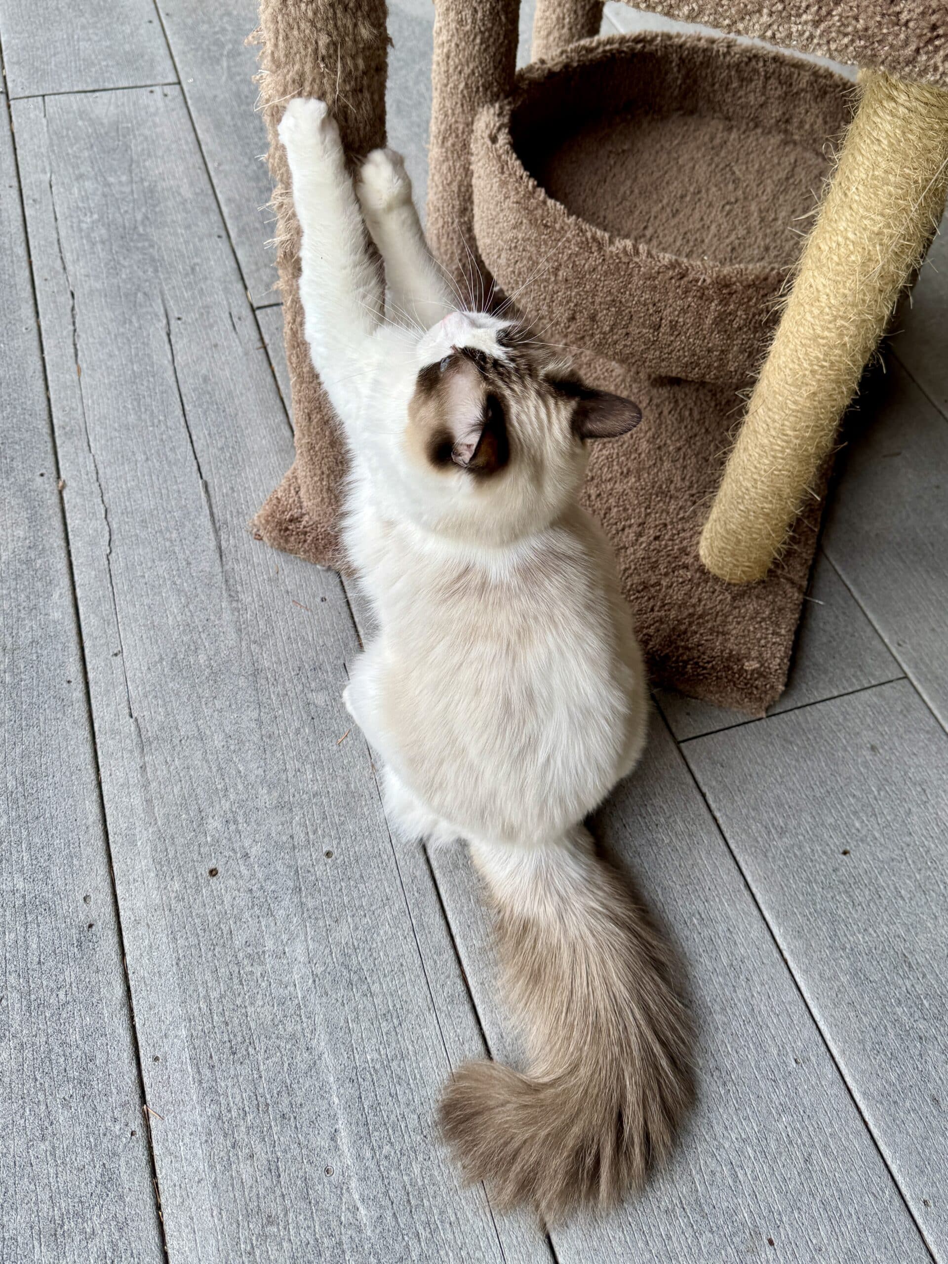 She will be bred to Love Song (Prufrock) to make very large kittens in seal lynx bicolor like this one and seal point bicolor.